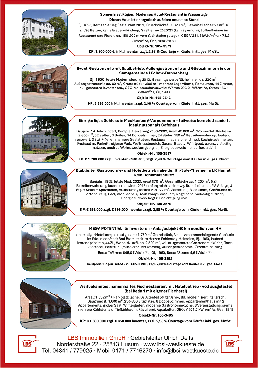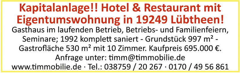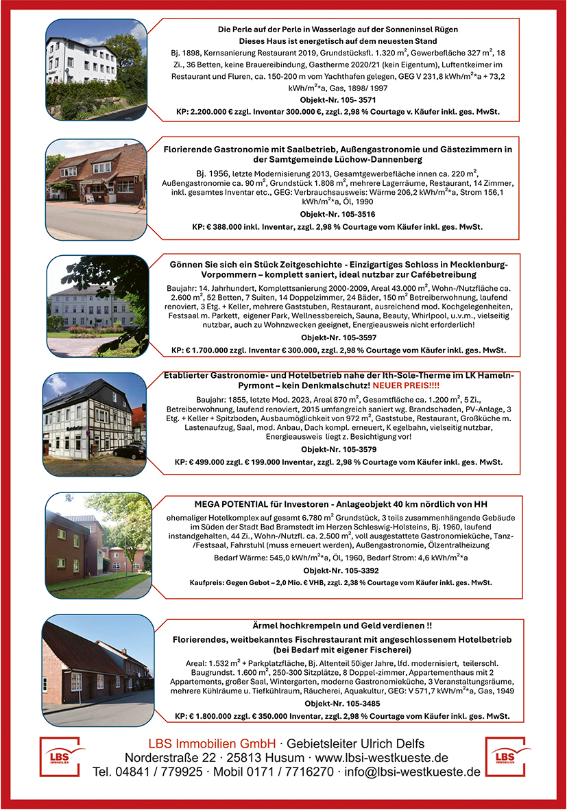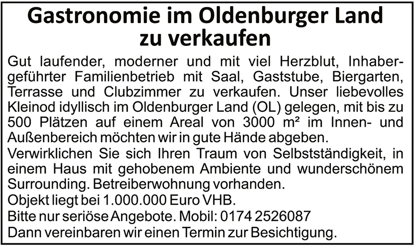 Hier finden Sie die Angebote wie Verkäufe, Vermietungen, Verpachtungen, Vermittlungen und Gelegenheiten